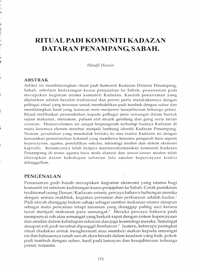 171 203 Hanafi Hussin Ritual Padi Komuniti Kadazan Dataran Penampang Sabah Pdf